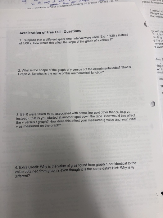 Questions Questions 1 Suppose That A Different Spark Timer Interval Were Used E G 1 120 S Instead Of 1 60 S How Would This Affect The Slope Of The Course Hero